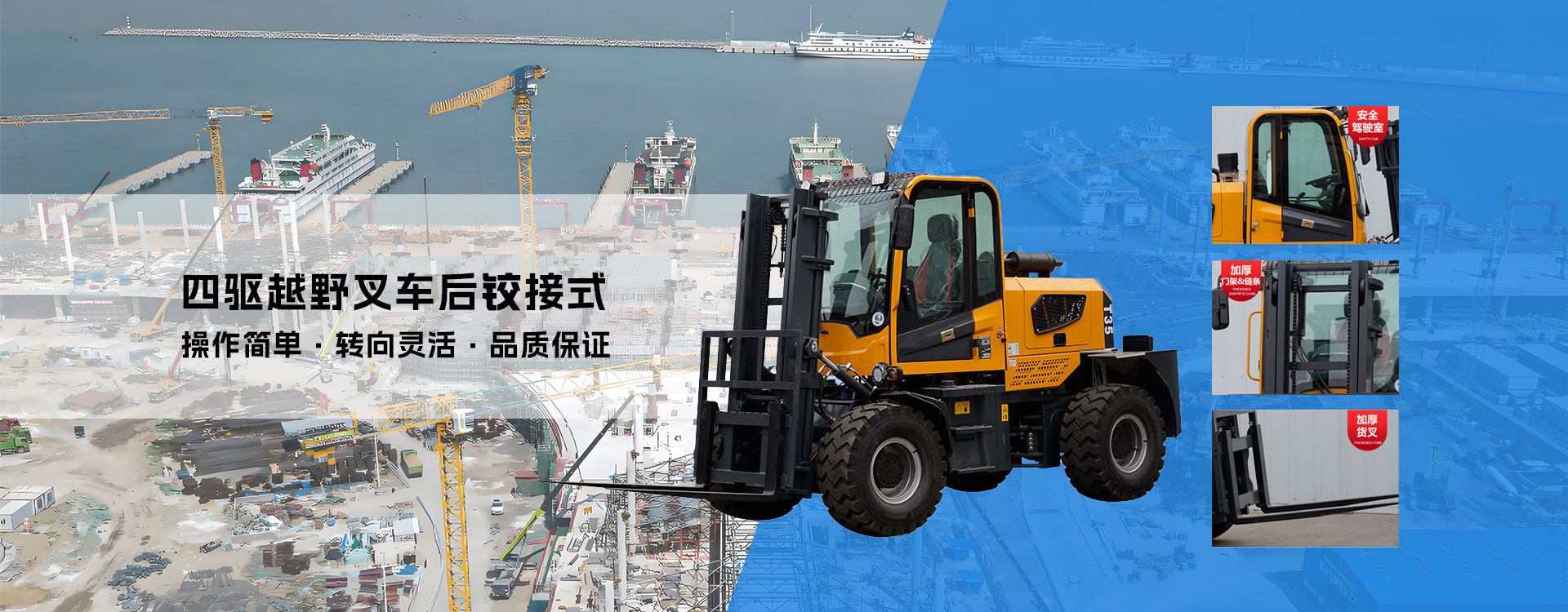 本公司是專業的越野叉車廠家和四驅越野叉車廠家,是多年生產工程機械、建筑機械的企業,擁有十幾年的設計制造歷史和精密的機械加工能力及技術人才。旗下擁有的越野叉車系列涵蓋3-10T,滿足了不同客戶的使用需求,產品引進歐洲先進設計理念和技術,自主研發的多種款式越野叉車以及叉車專用的變速箱和后輪驅動轉向橋,擁有國家新型設計實用專利,轉向角度大,整機性能質量可靠。